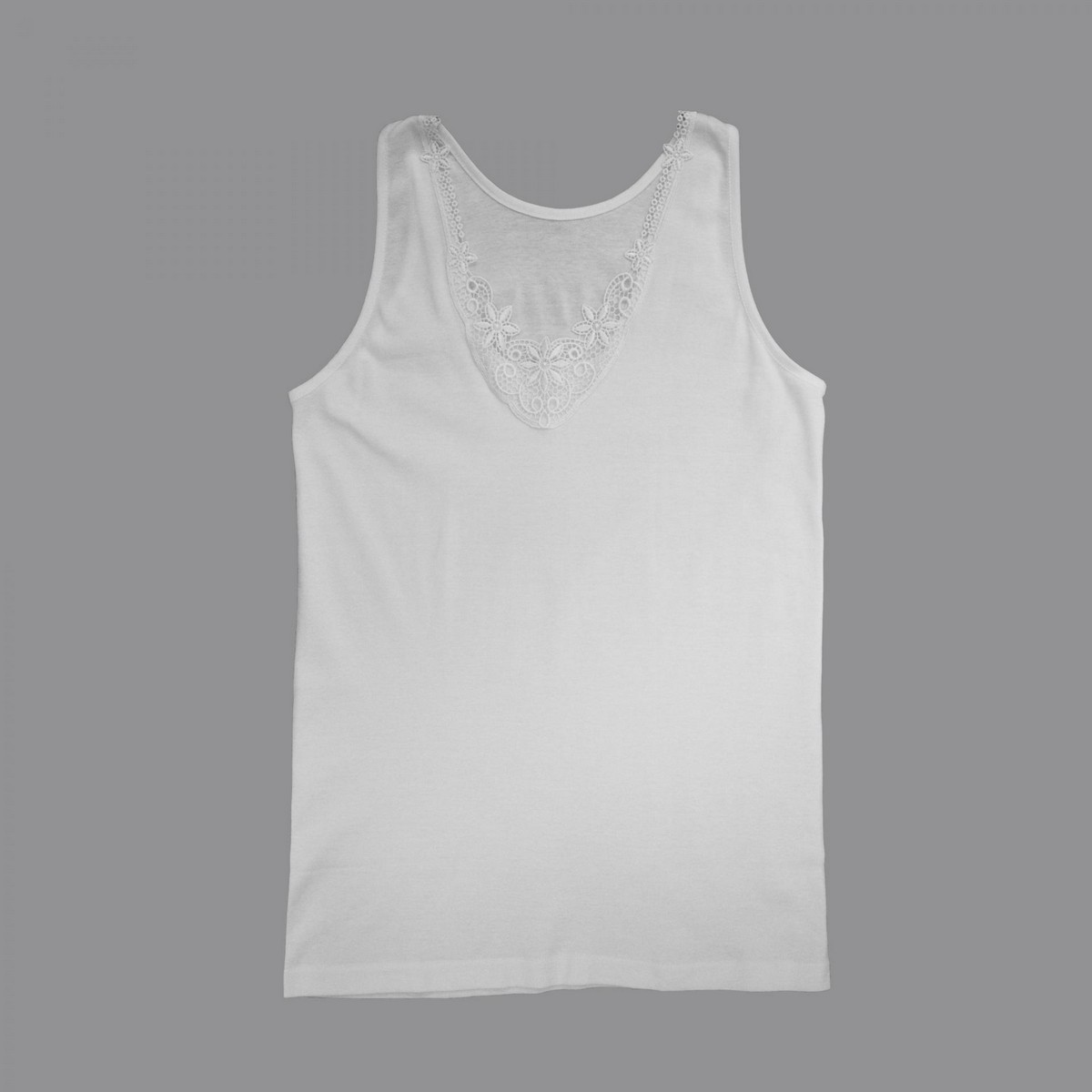-Maiou cu bretele late confectionat din bumbac,accesorizat cu dantela in partea de sus. Compozitie: 100% bumbac. Spalare: 40°C Calcare: da.