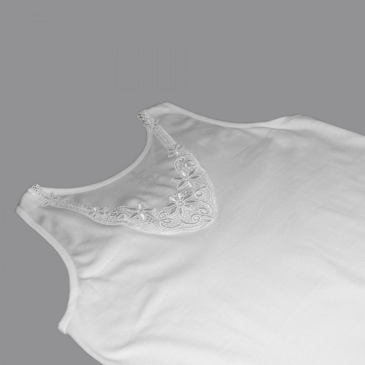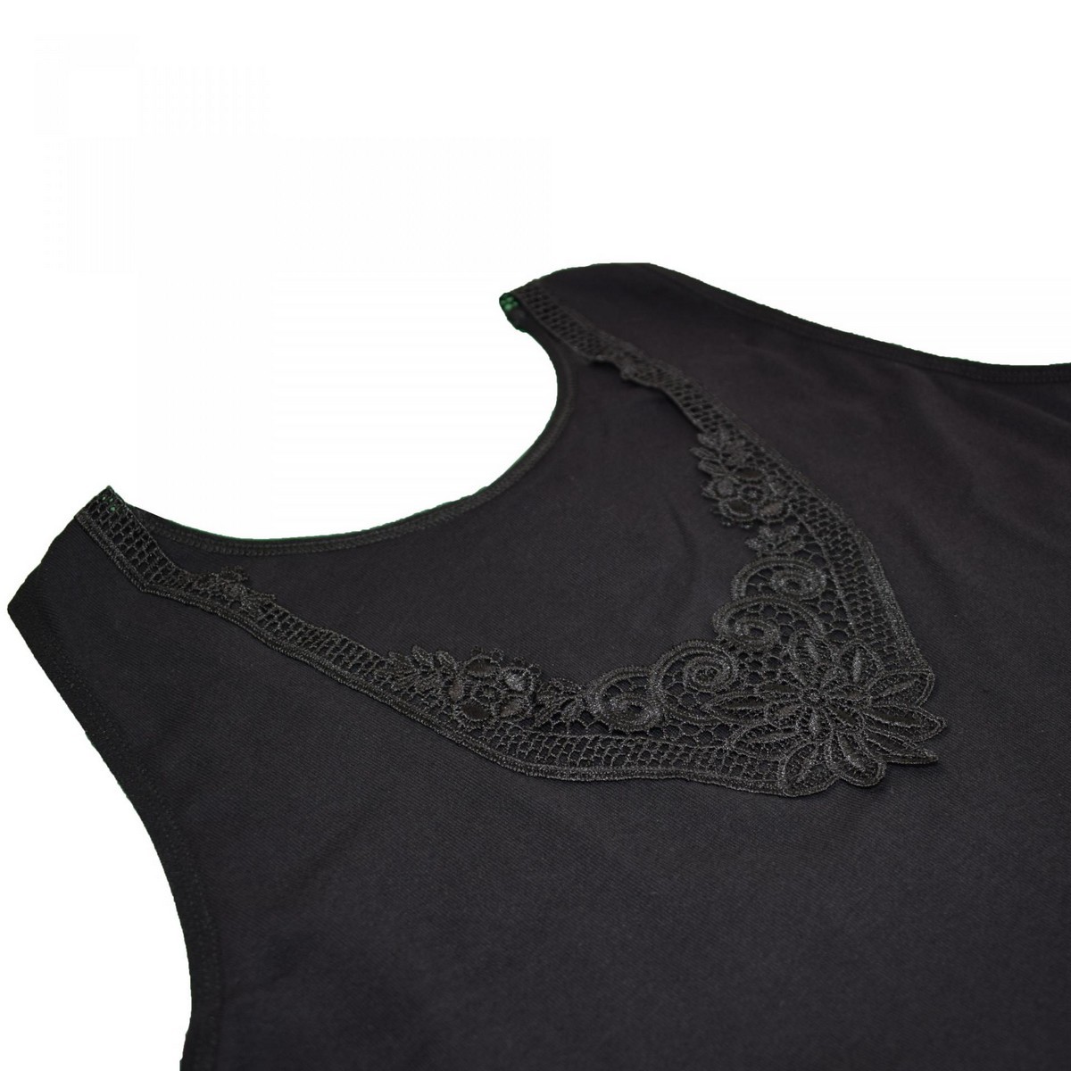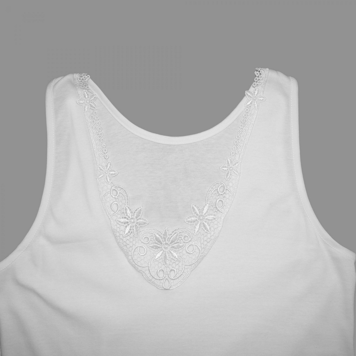 Maiou cu bretele late confectionat din bumbac,accesorizat cu dantela in partea de sus.
