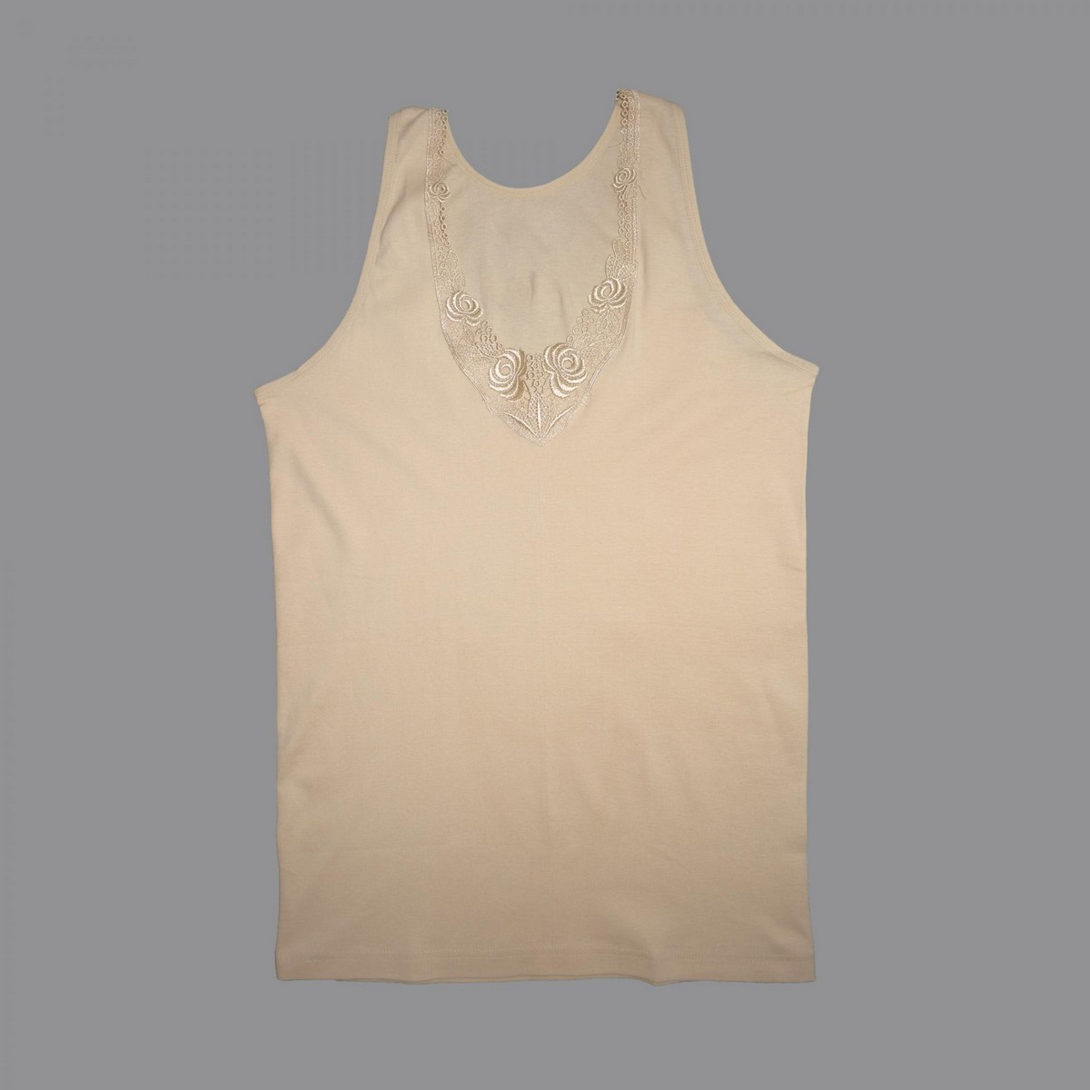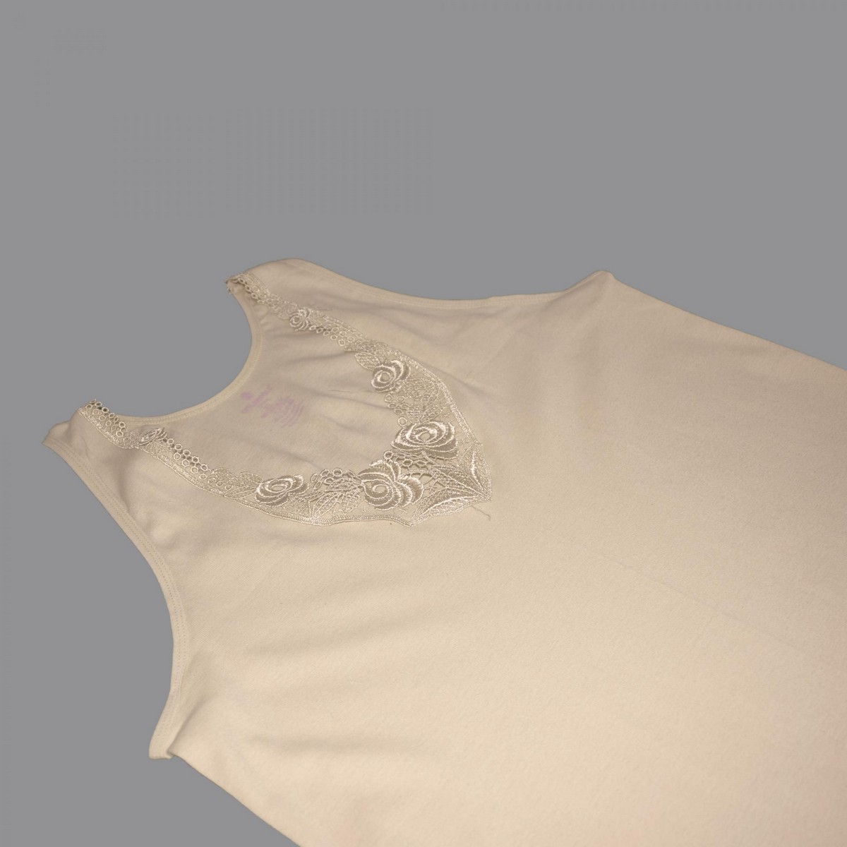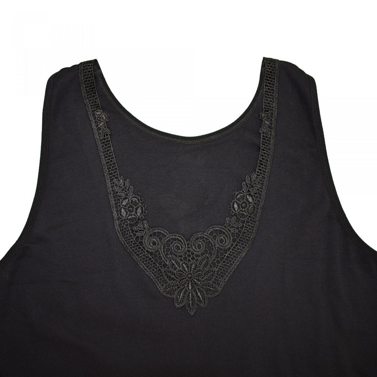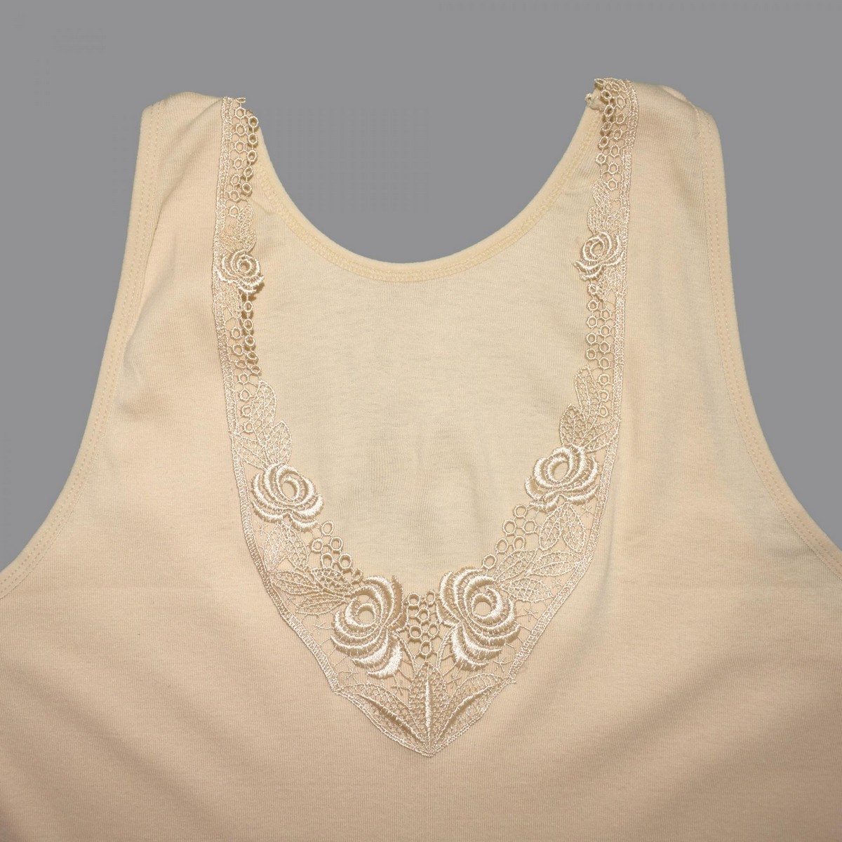 Maiou cu bretele late confectionat din bumbac,accesorizat cu dantela in partea de sus.